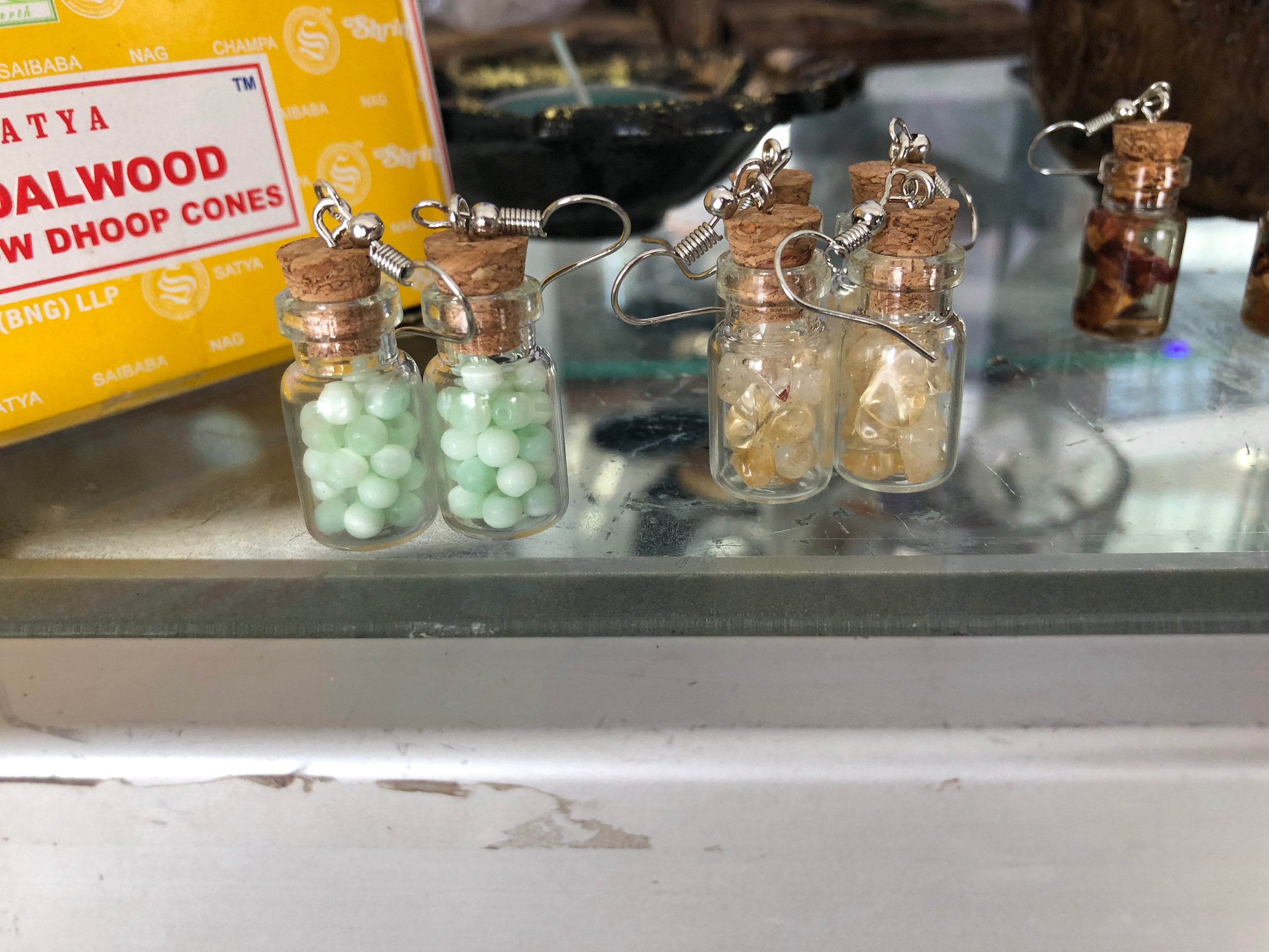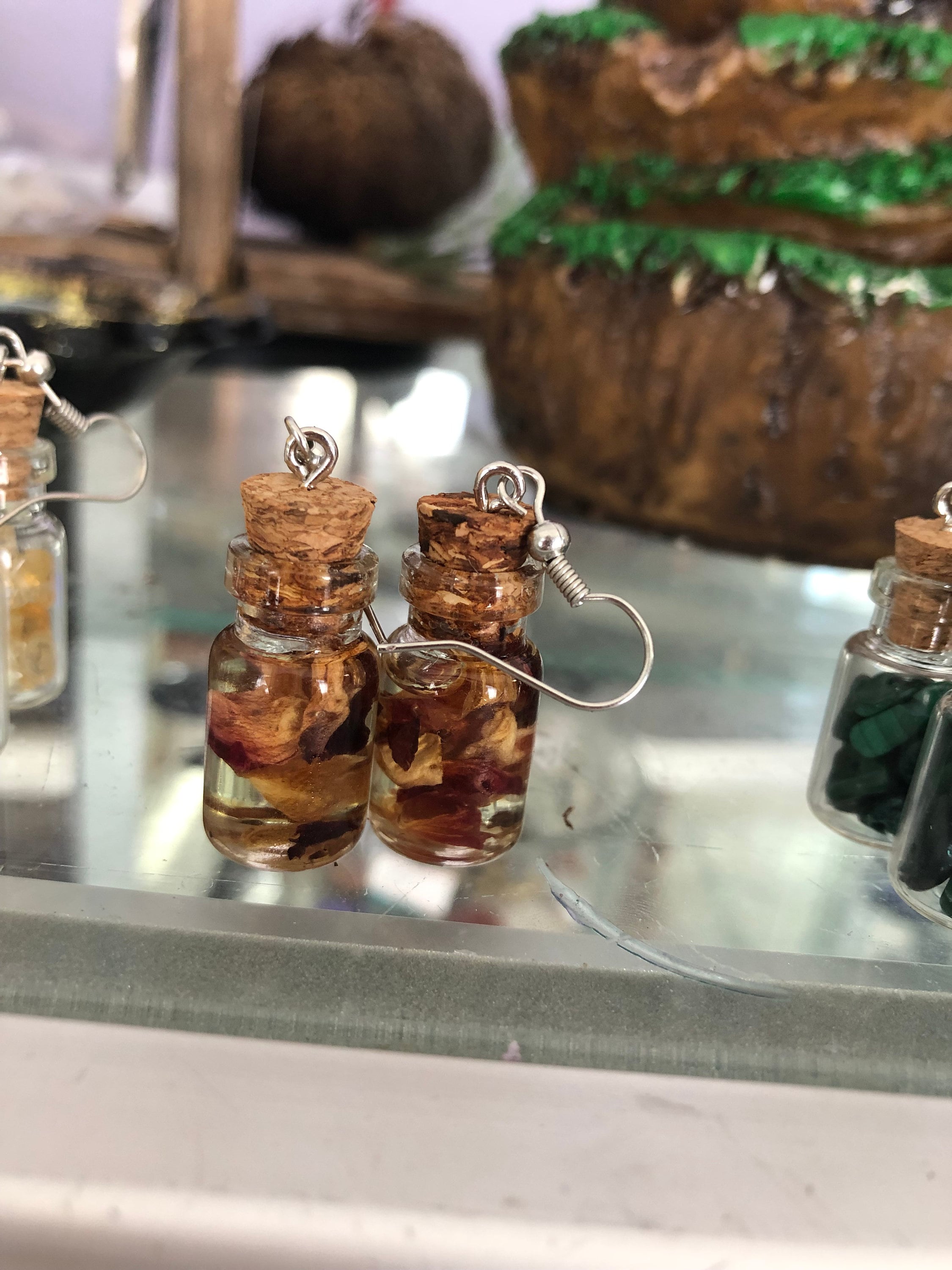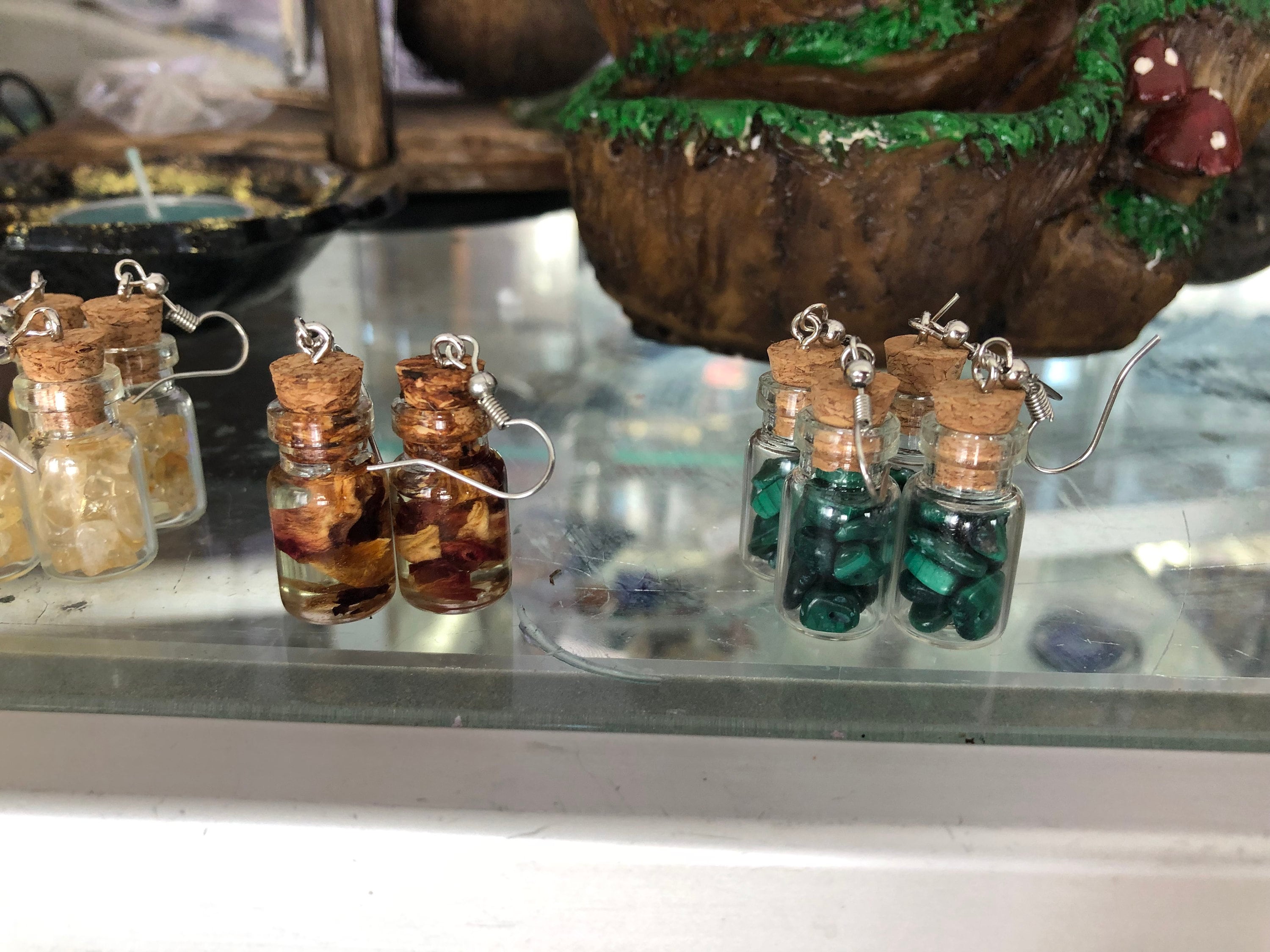 These adorable spell jar earrings are available with different crystal options as well as potion options. These are a great way to add some magic in your day.