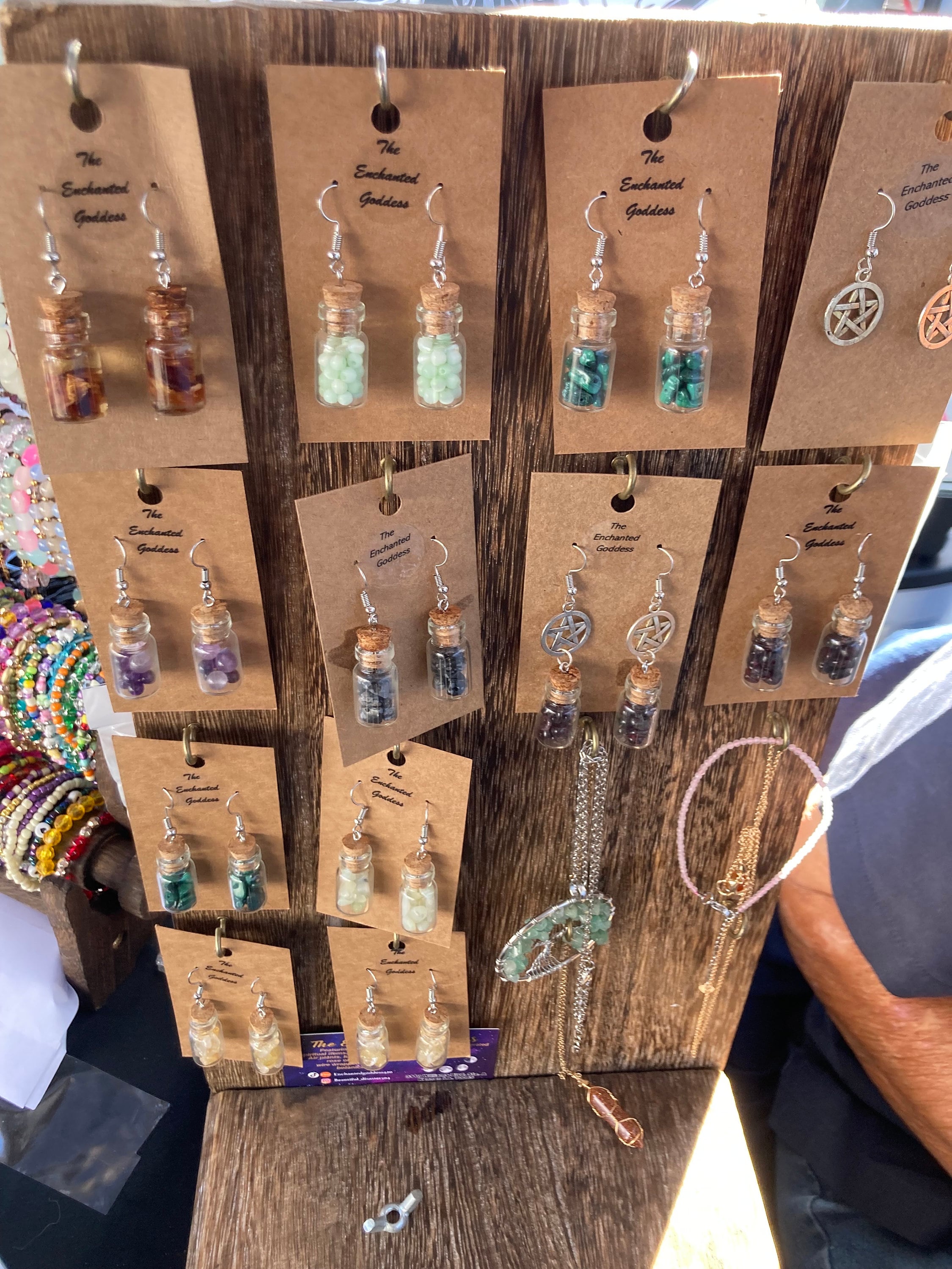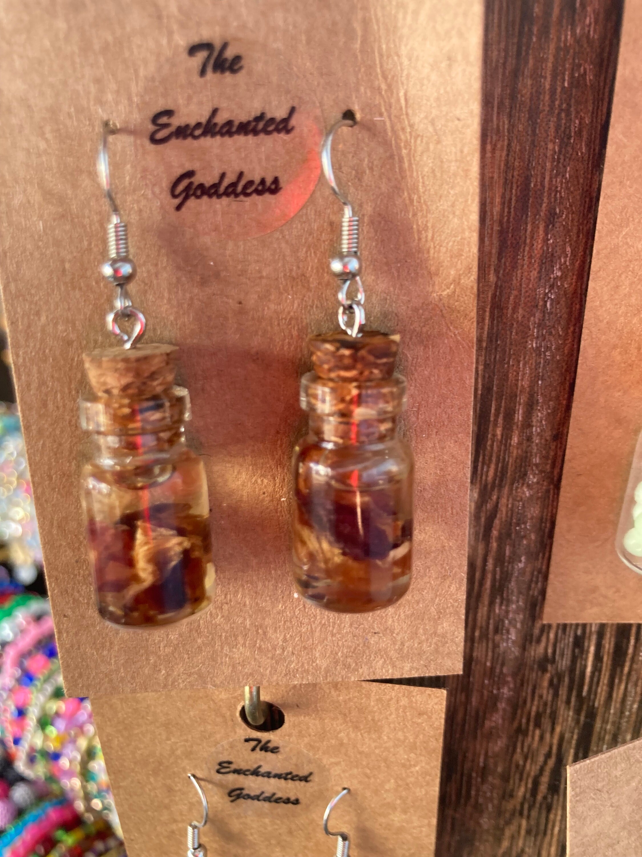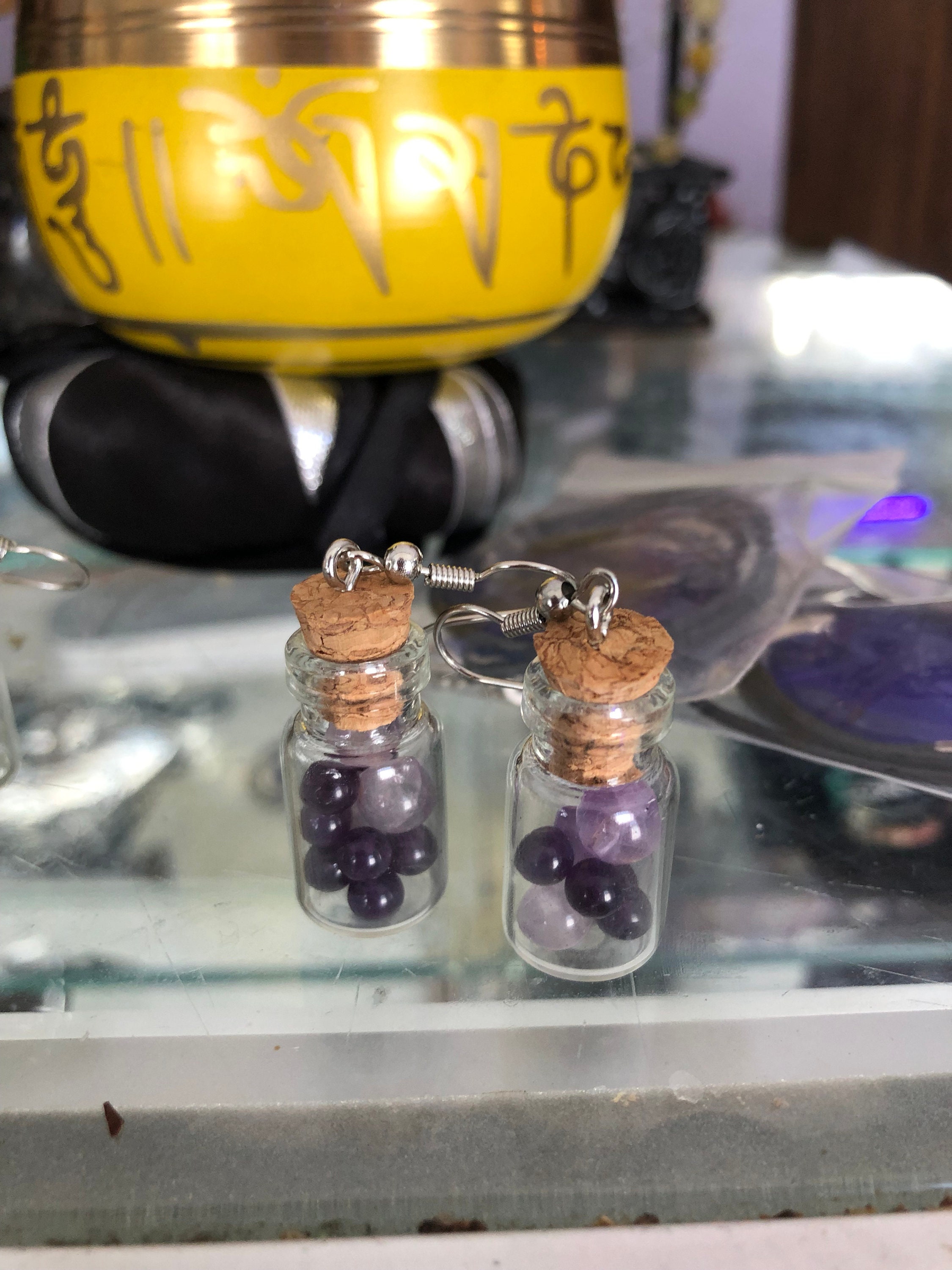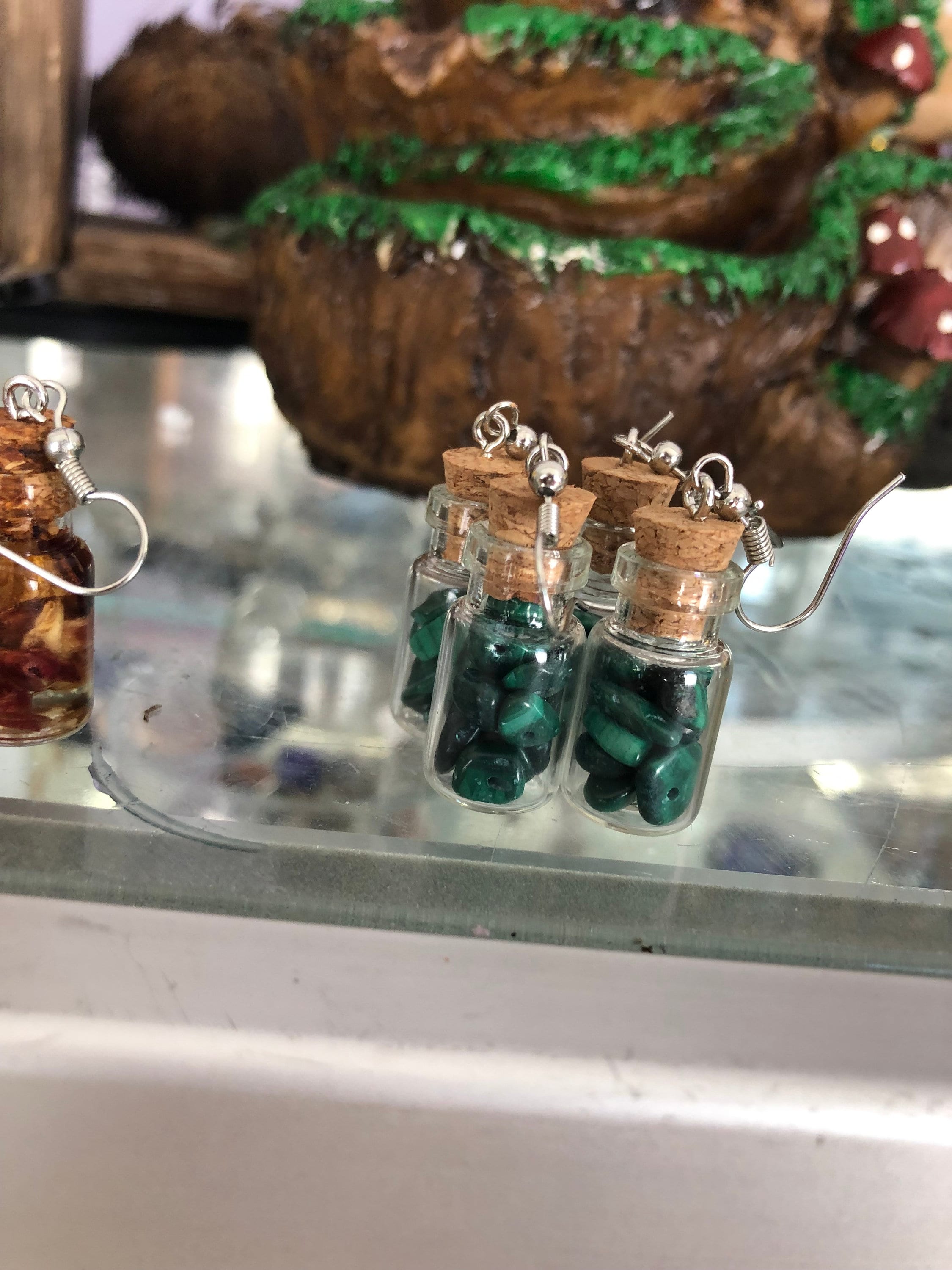 These adorable spell jar earrings are available with different crystal options as well as potion options. These are a great way to add some magic in your day.
